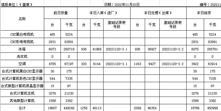 2022.11.19回收拆解統(tǒng)計(jì)表