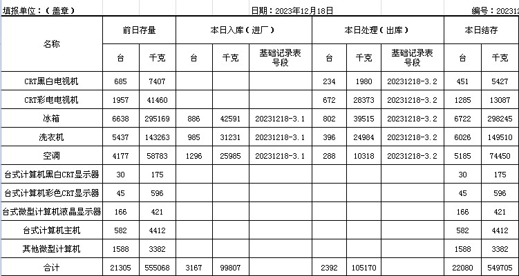 2023.12.18回收拆解統(tǒng)計(jì)表