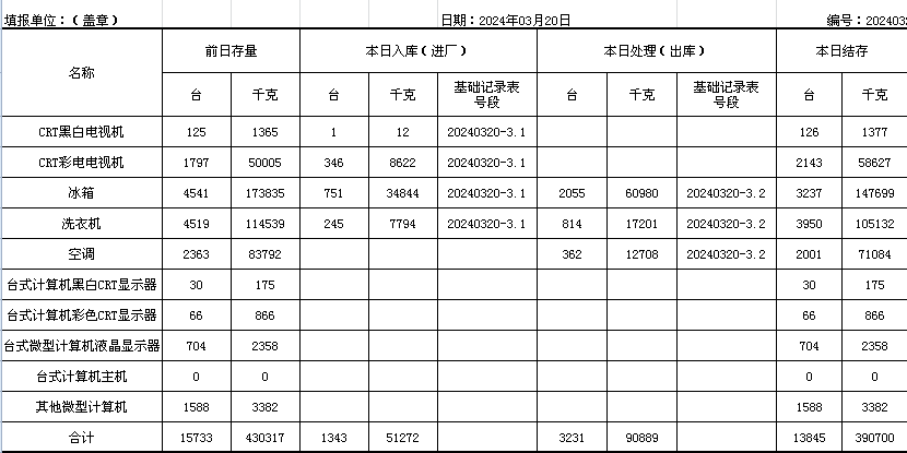 2024.03.20回收拆解統(tǒng)計(jì)表