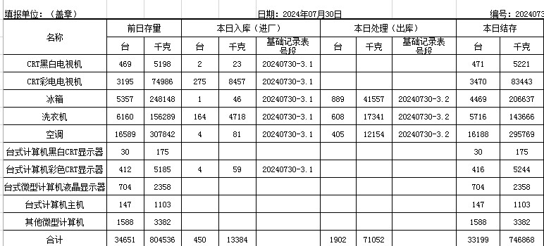 2024.07.30回收拆解統(tǒng)計(jì)表