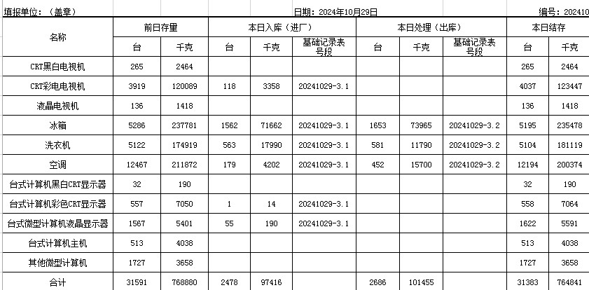 2024.10.29回收拆解統計表
