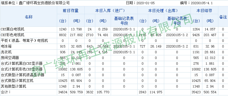 2020.01.04回收拆解統(tǒng)計(jì)表