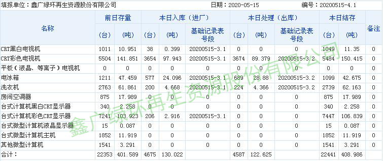 2020.05.15回收拆解統(tǒng)計表